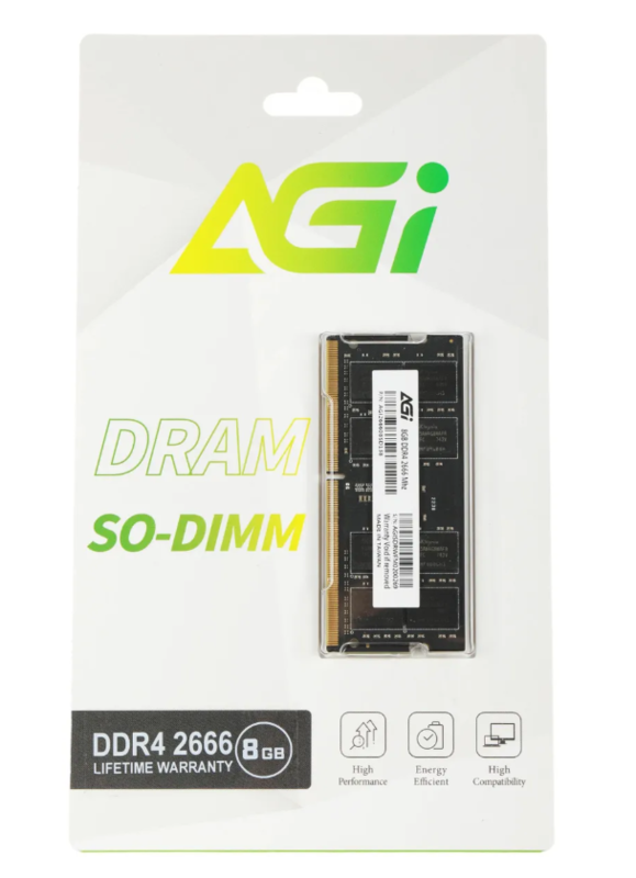 Product Name | AGI DDR4 8GB Laptop RAM SO-DIMM 2666MHz CL19 1.2V Nero (AGI266608SD138) |