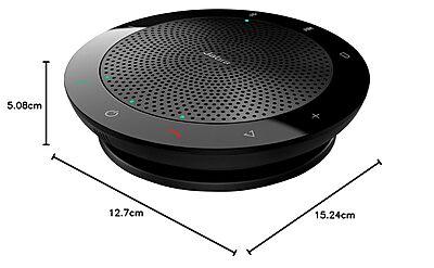 The Jabra Speak 510+ UC is a portable 10-watt wireless speakerphone with USB and Bluetooth connectivity, offering crystal-clear audio for conference calls. It supports up to 15 hours of talk time, features an omnidirectional microphone with 360-degree coverage, and works seamlessly with leading unified communications platforms.