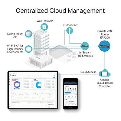 TP-Link Omada Gigabit VPN Router Wired Single Band 1000 Mbps ,ER7206